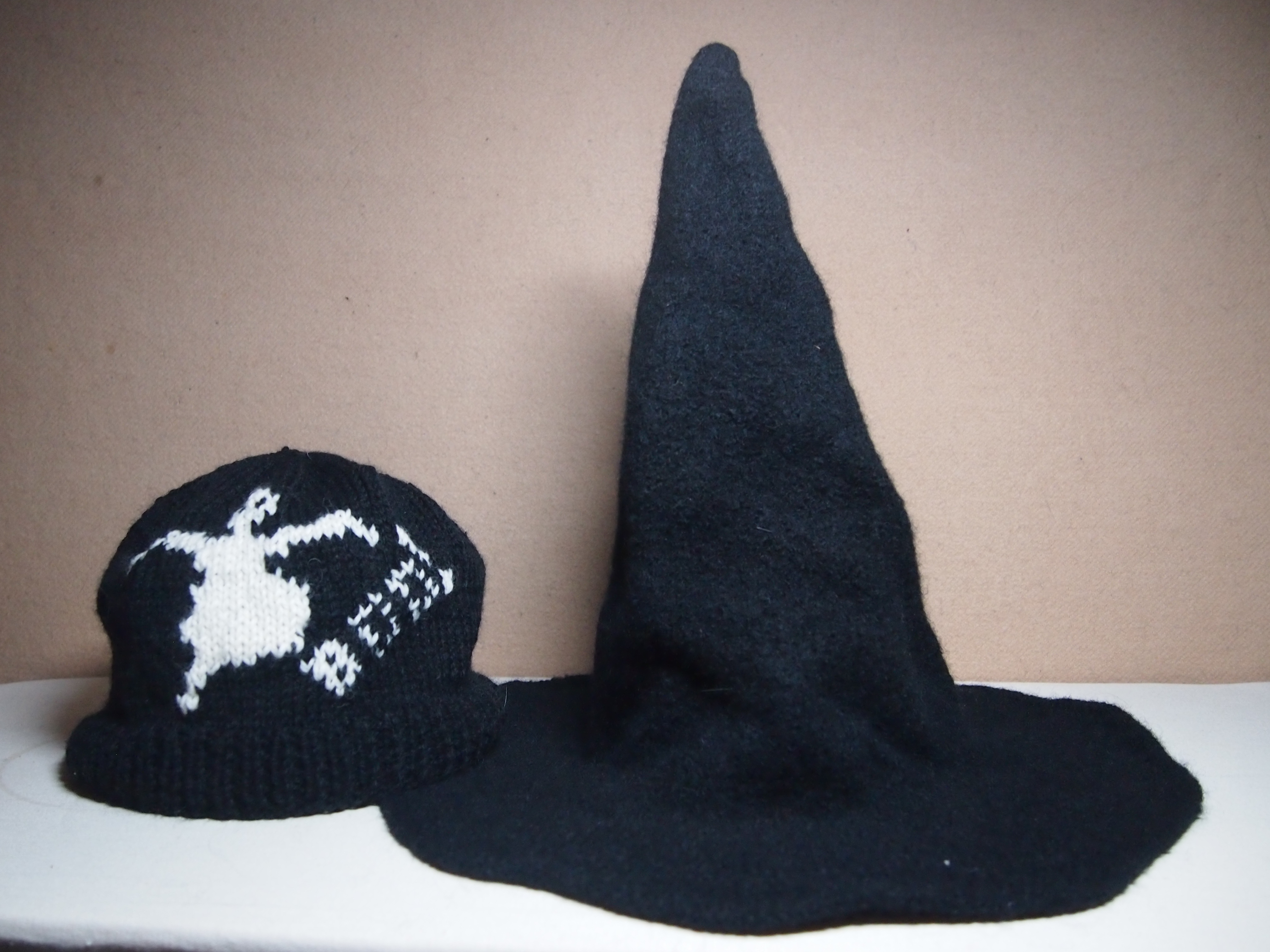 A while ago I was saying to Heather that I would like to do a Santa hat nearer to Christmas. I got ‘MUM, Santa hats are NOT knitted, you might as well make a witches hat too!’. Of course, this made the idea of a felted witches hat pop into my head.