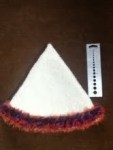For today’s hat, I didn’t want any of the Bernat Boa left over, so I made the topper first. I just kept crocheting chains 8 stitches long and returning to the base with 6 single crochet. I kept this until I thought it had enough spikes. I then cast on 100 stitches and knit until I ran out. I then switched to Patons Classic wool and increased to 150 stitches. After 8 rows, I decreased to 144 then lost 8 stitches every 6 rows.