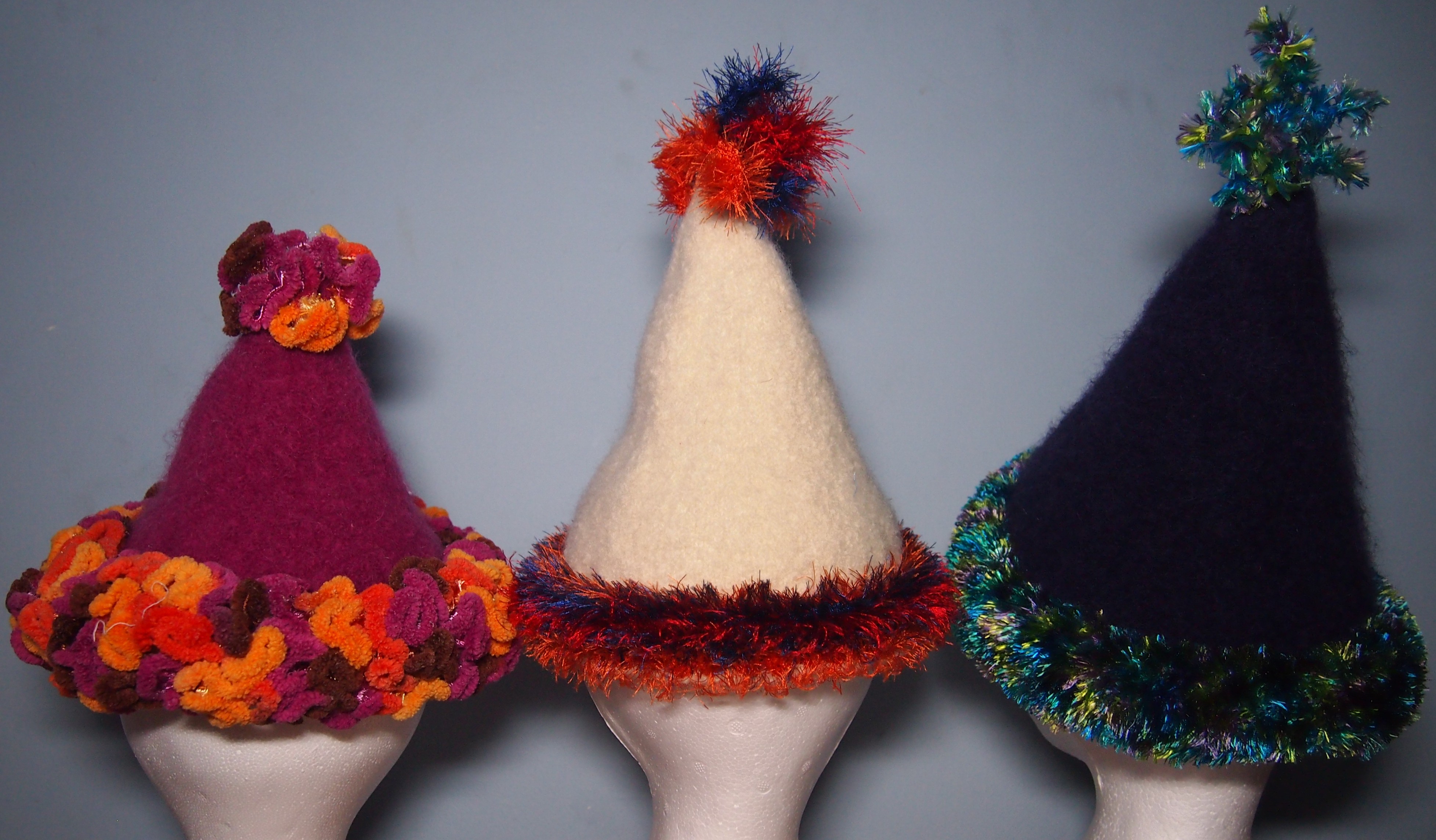 I think she just likes plain hats, no bells or whistles, just some pattern stitches and maybe a bobble on top. None of this wacky stuff. And I think she has a point. I do like making the hats with novelty yarn and frills but I am not sure many would wear them, holidays notwithstanding.