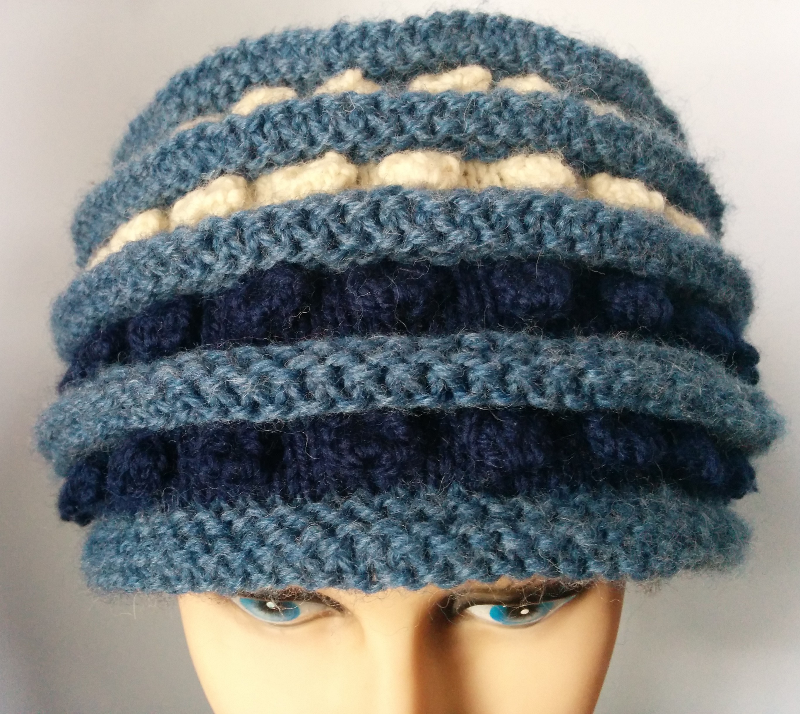 A while ago I was watching the Australian Open tennis and there was a match between Stan Wawrinka and Novak Djokovik. The courts were blue, and both men were wearing blue shirts, a symphony of blue. Being big on colour, I loved the look of the whole thing, but was especially captivated by Stan Wawrinka’s shirt. As you can see, it is deep blue at the bottom, transitions through a light blue in the middle, and into white at the top. Since that day, three of the hats I have made have been trying to capture the feeling of this colour shift.