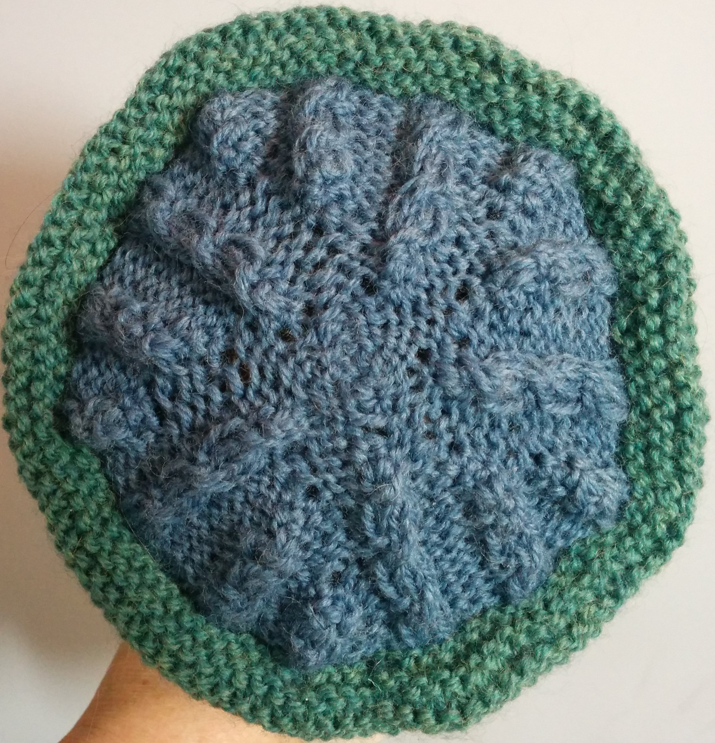 …and silly me, I just realized I could have done it if I had got rid of one set of four, then done a 5 point decrease…oh, well, the garter stitch at the top echoes that at the bottom, so fine by me…I might also put another couple of rows of garter stitch before the cross stitch, but better done than perfect. Maybe.