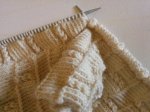 This one went from concept to completion with only minor glitches. I had to rip back a couple of rows a time or two in one section or another. I was at my brother’s birthday party with about 35 people while I was knitting this so once in a while I forgot if I was on a resting row or not and had to go back a bit. All the stitches I used except one had a resting row in them.
