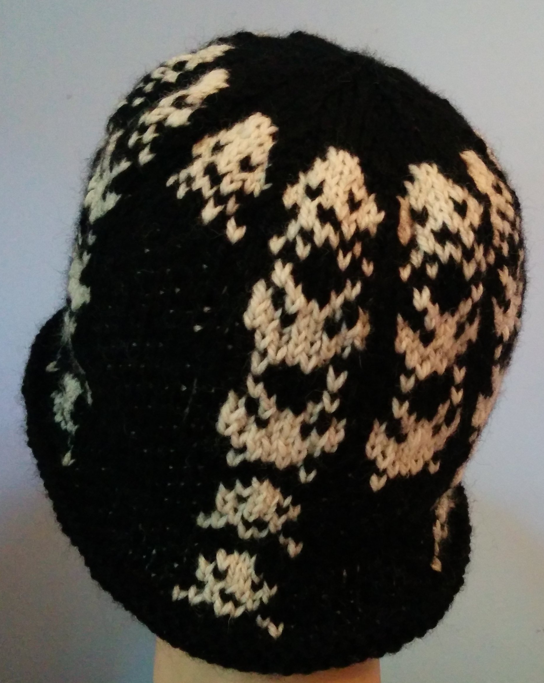 Oh, and how do you like them apples Nancy…7 stitches in one hat…now THAT is pattern loading… I could have done 13 stitches if I had not repeated around the hat. But that may be overkill. Another time, maybe. If I get desperate.