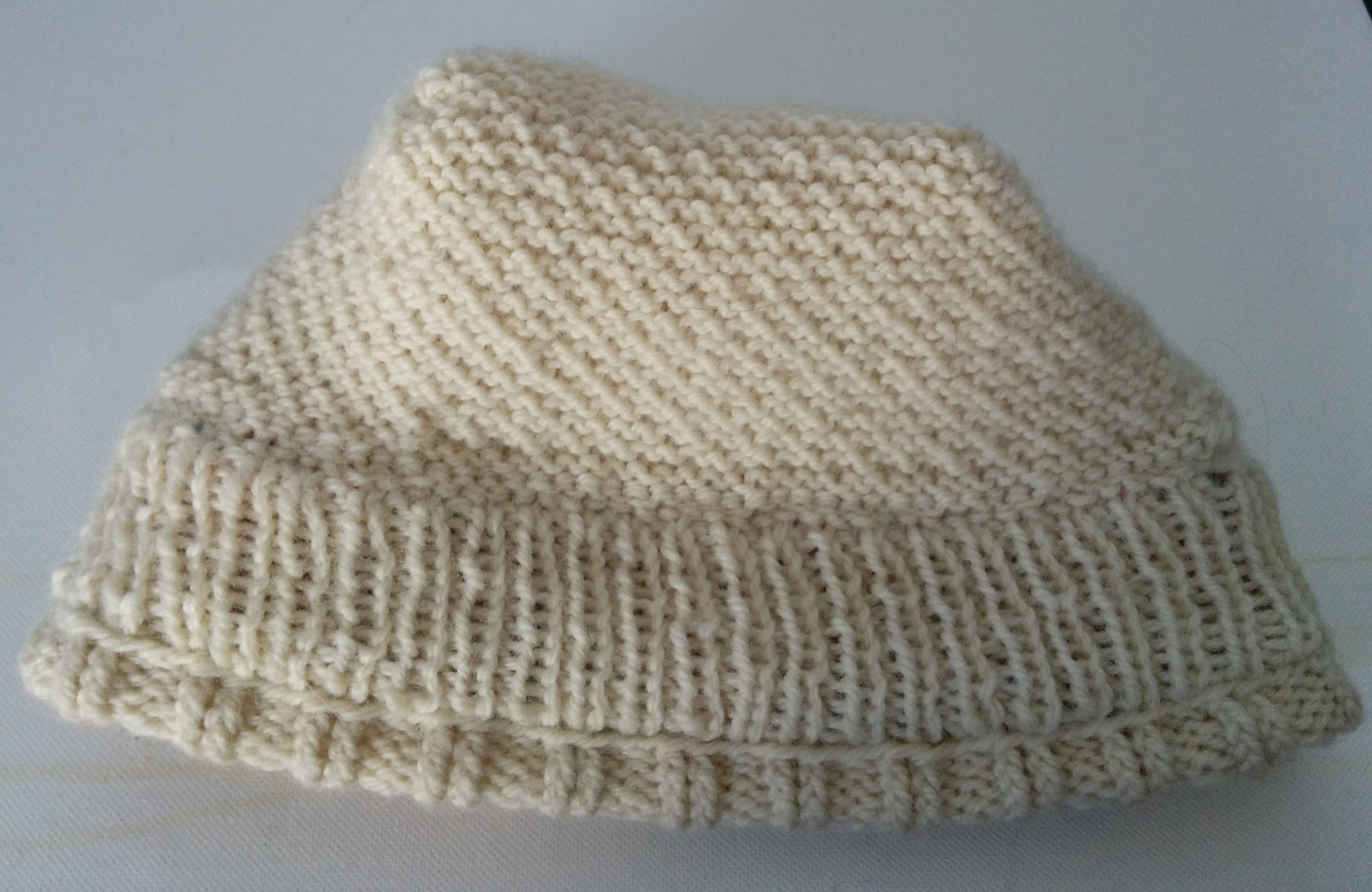This is the hat I did this week using Slip-Stitch Honeycomb from Chapter Five, Slip-Stitch patterns and Twisted Knit-two Purl-two Ribbing from Chapter Three, Ribbings. I decreased aggressively in four places to get the pointy bits that look like an upturned Shaker Fruit Basket…see image above.