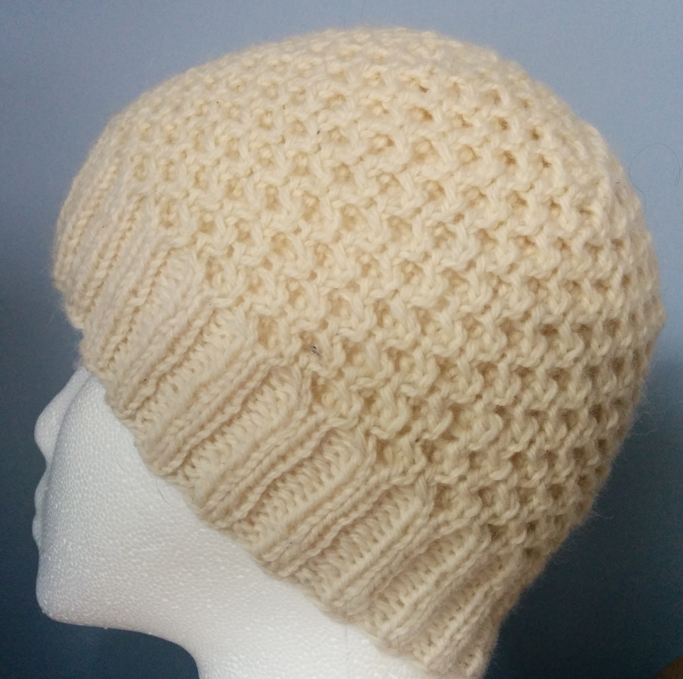 I made one more hat this week using Mistake-Stitch Ribbing from Chapter 3, Ribbings and Slipped-Stitch Ridges from Chapter 5, Slip-Stitch Patterns. I really like how the top worked out on my second try (frogged the first one).