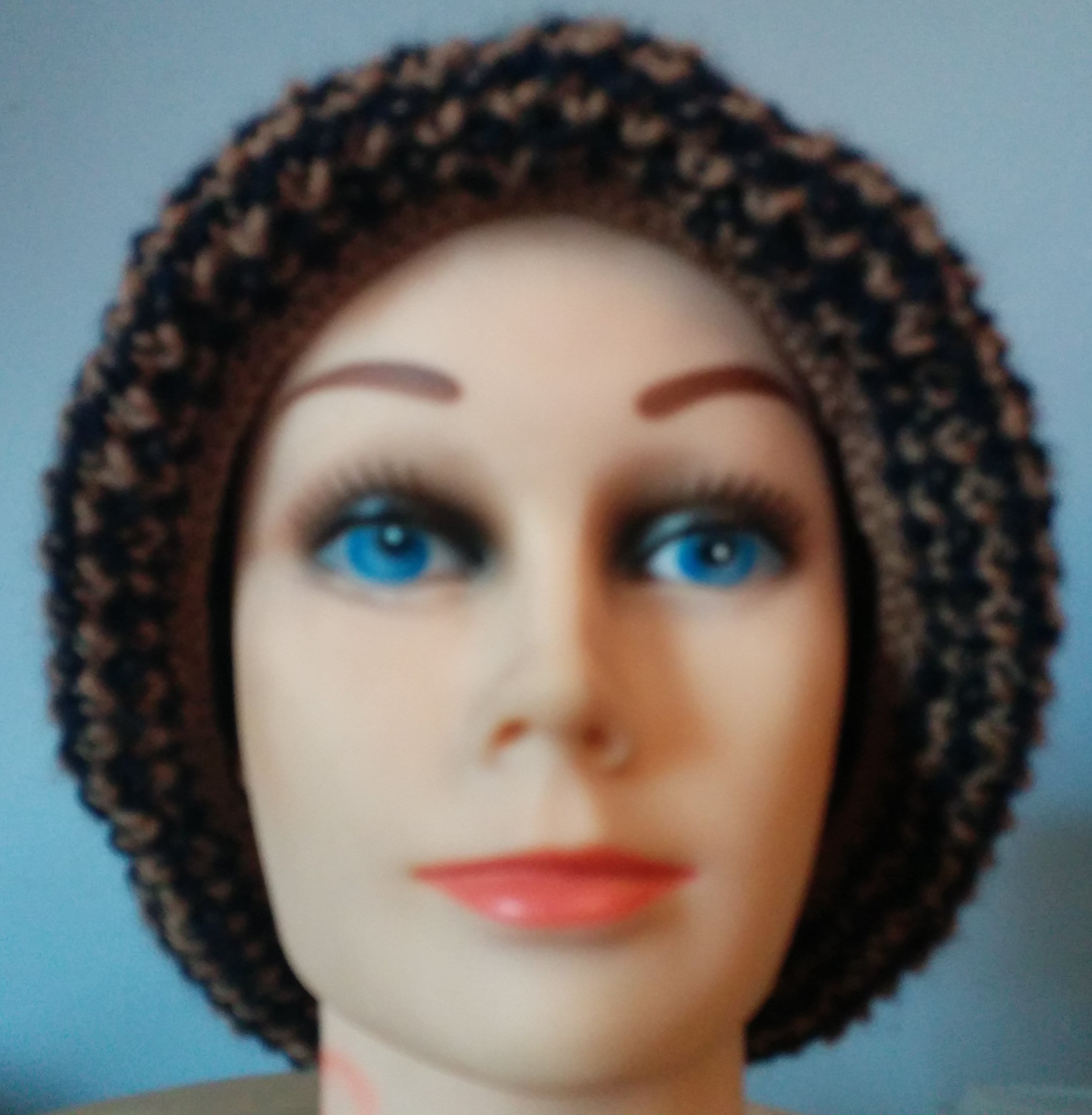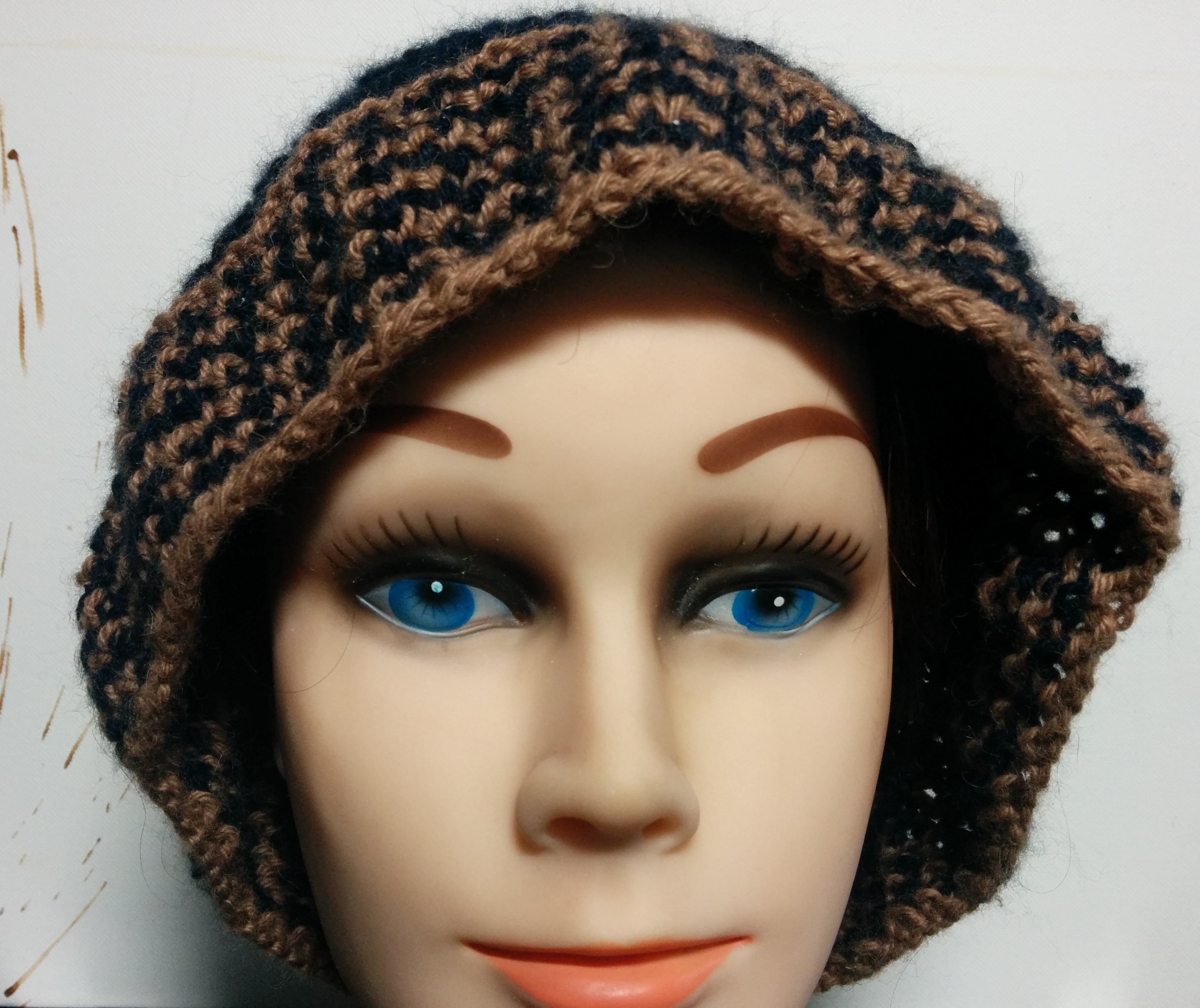 I cast on 120 stitches and used Organ-Pipes pattern, pg 23 as the ribbing, then switched to Chain Stripes, pg 66. In this case, I decreased in the second of the two plain knit brown rows between the coloured chains. The first time I did k2, k2tog around (90 st left). I switched the pattern from k6 slip 2 to k4, slip 2 at this point. Next time i did k1, k2 together around (60 st left) and stayed with the k4, slip 2 on the pattern rows. The third time I did k2 tog around (30 st left). After the final chain rows, I just got rid of the rest of the stitches in 6 rows.